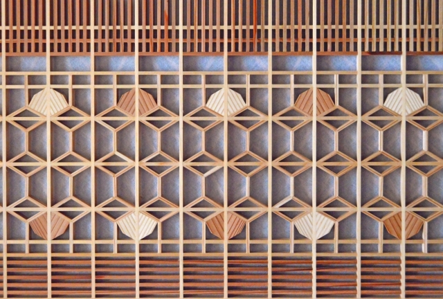 In the Edo period, Kumiko became further refined, with complex and elaborate patterns being created. Craftsmen competed to devise new patterns, with their number said to have reached over 200. During this era, Kumiko established its position as architectural decoration.